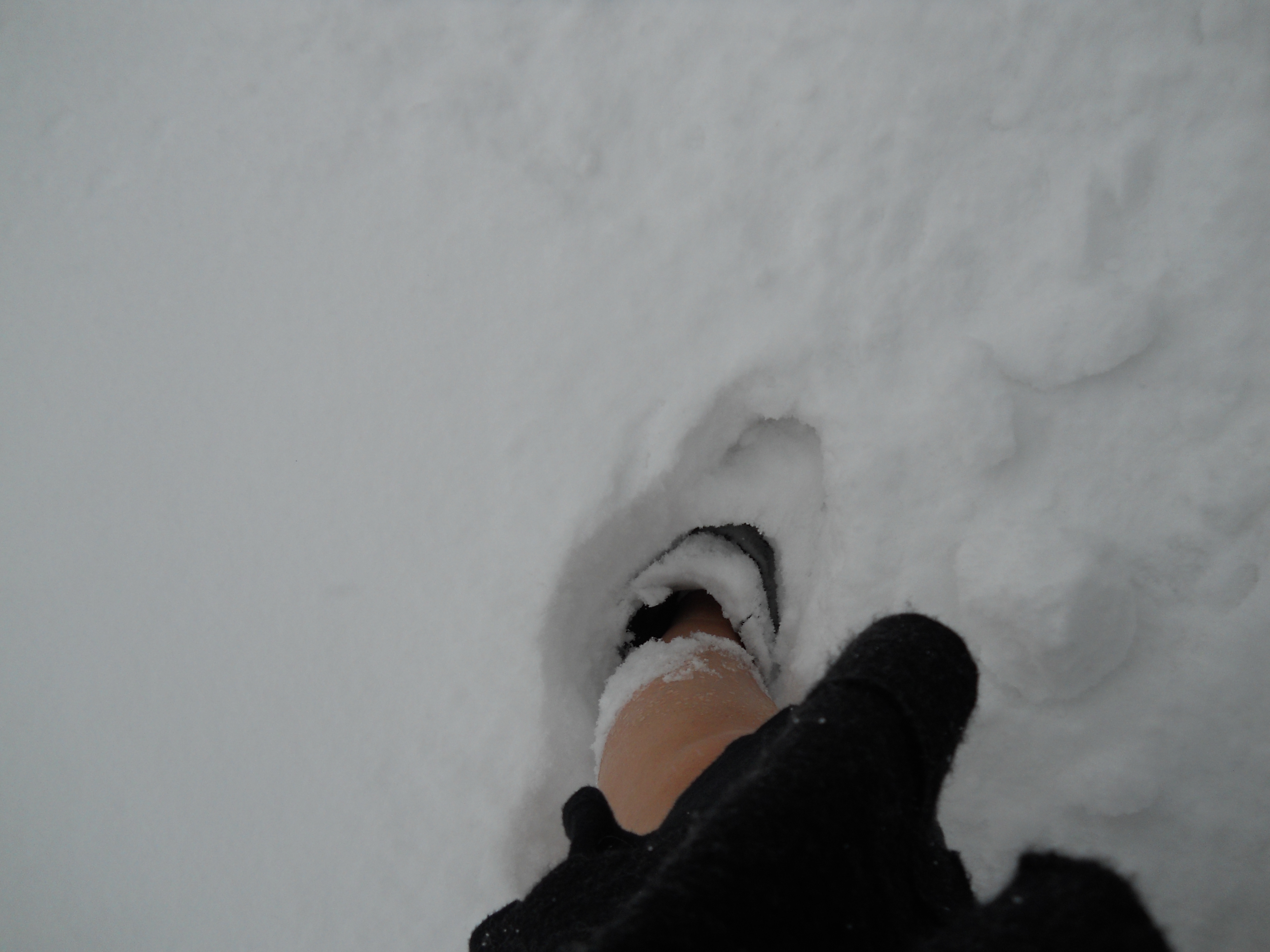 Flaw 3: Believing that if I was going to get icy shoes getting the wellies, I might as well get as little as possible soggy. I therefore rolled up my trousers to make shorts and wore my slippers through the snow that was up to my knees.