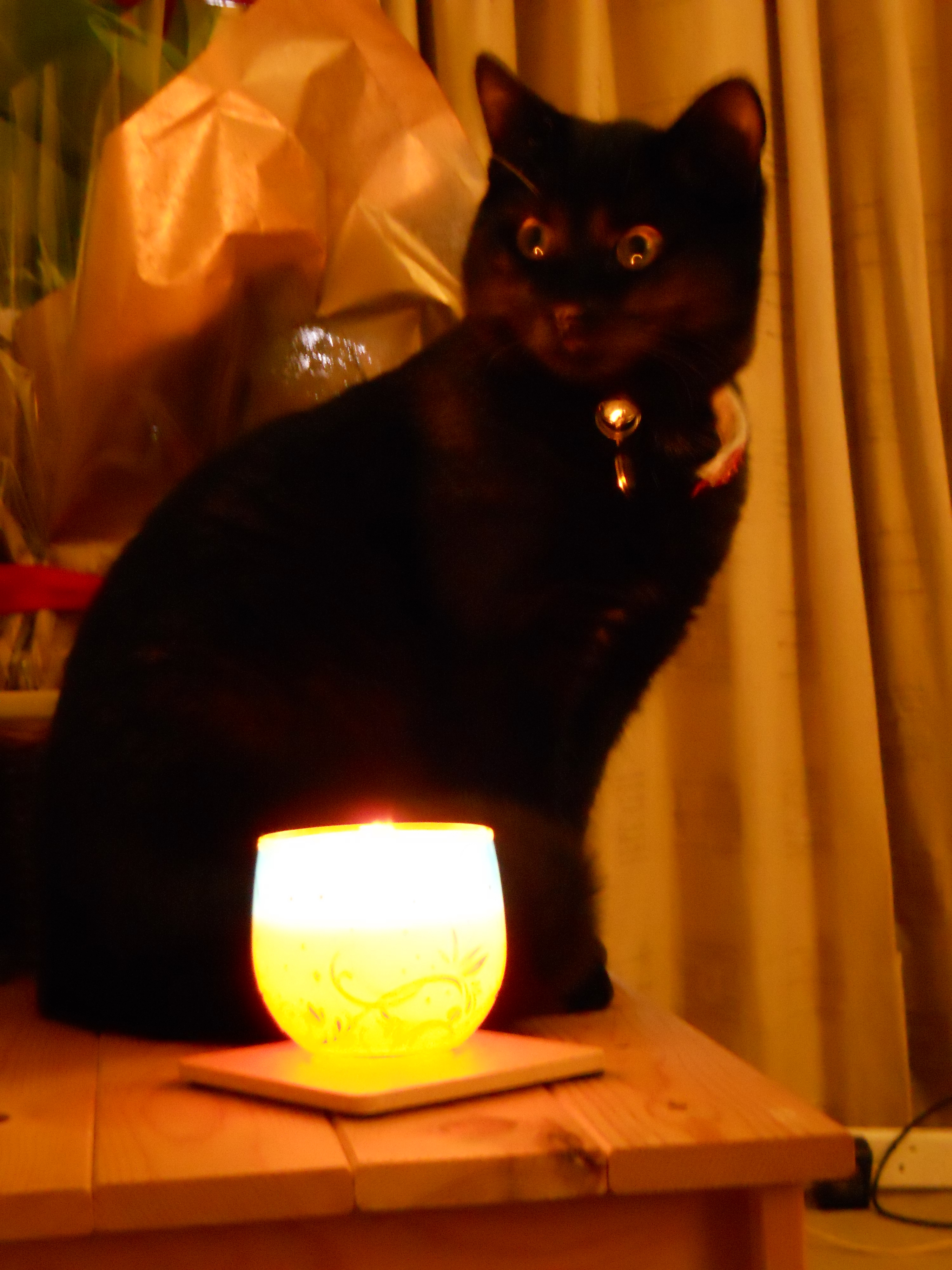 I thought that supervising the first whisker singeing would be sufficient to teach the boys that you stay away from candles (this is the first candle they have been able to get close to).  Apparently not.  A few minutes after the singeing incident, there was a horrible smell, a smoking Charlie and a marginally interested Norman.