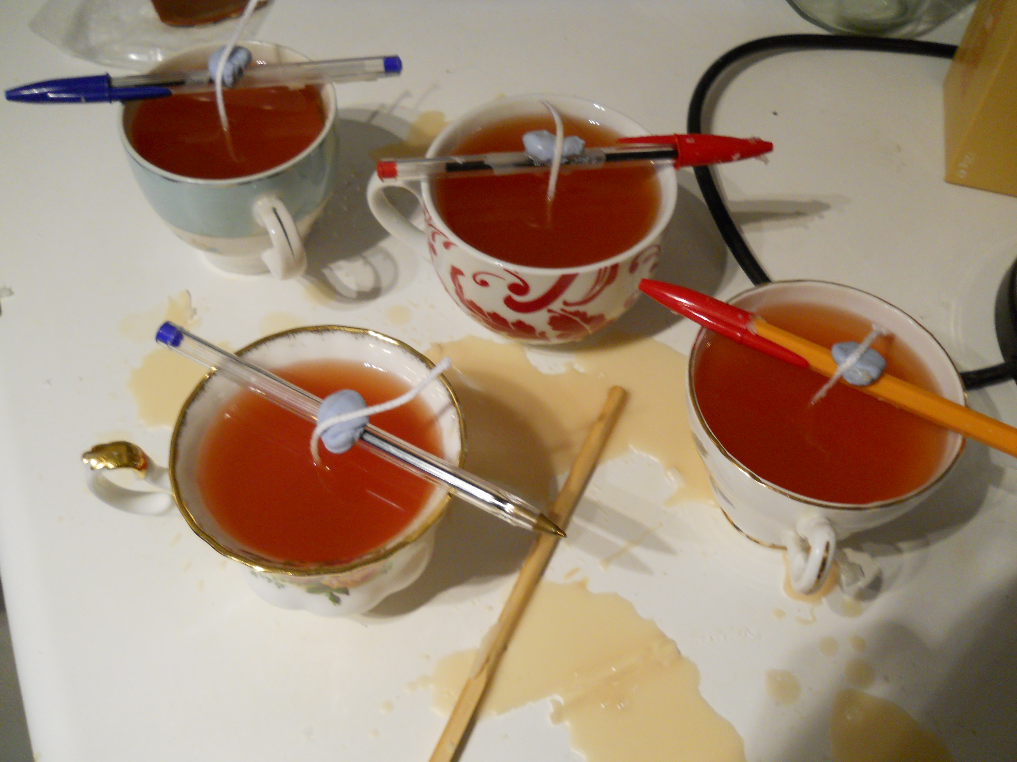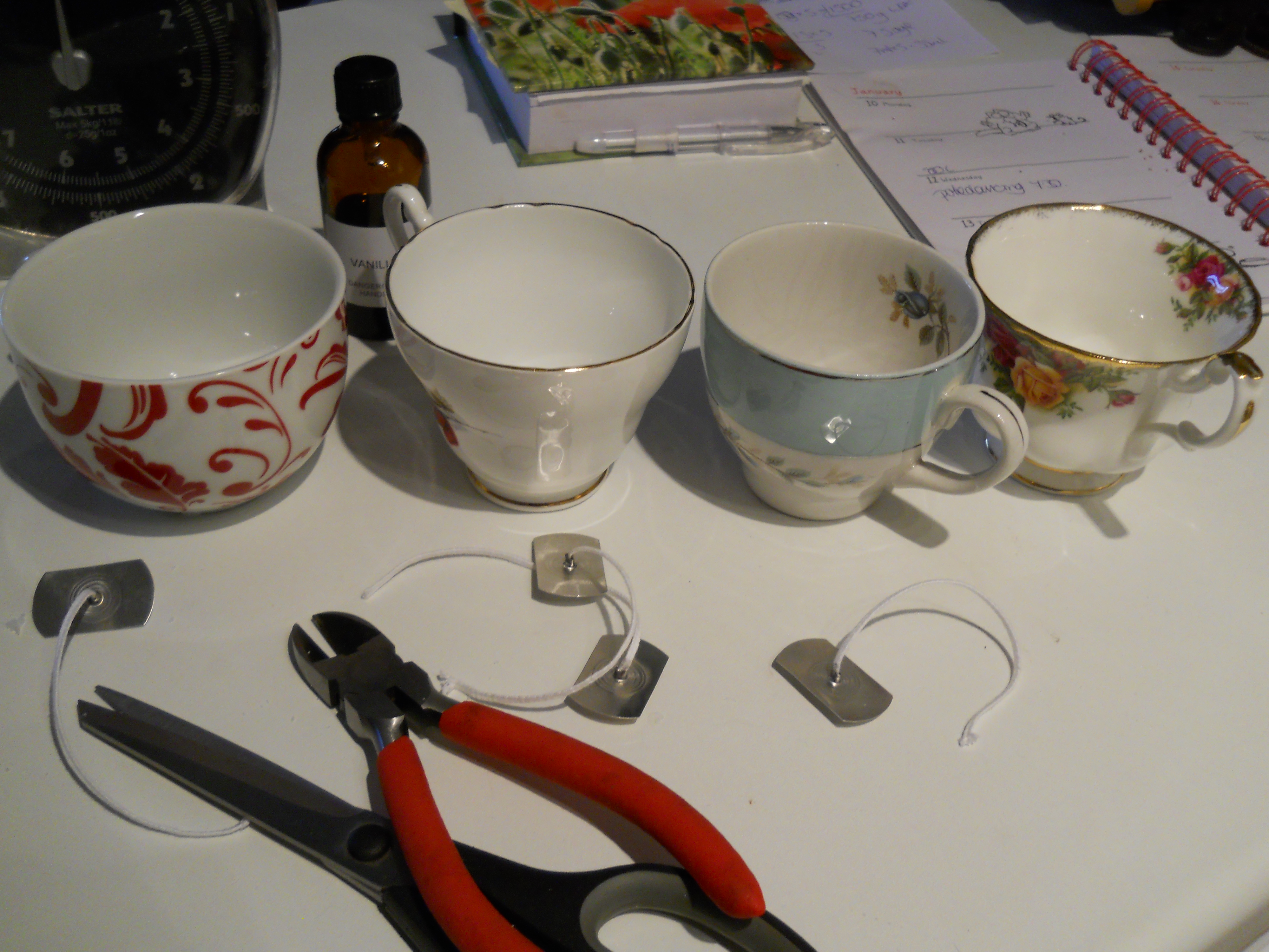 sprinkling of internet shopping and the arrival of a box of wax. Quite a big box of wax. Big in comparison to Pog Towers – the smallest house in the world which also contains minimal cupboards. Nestled with the wax, wicks, dye and scent were the instructions which, much to my amazement I read before embarking on my afternoon of creativity. Which is a good thing as I needed 2 saucepans and I only own one.