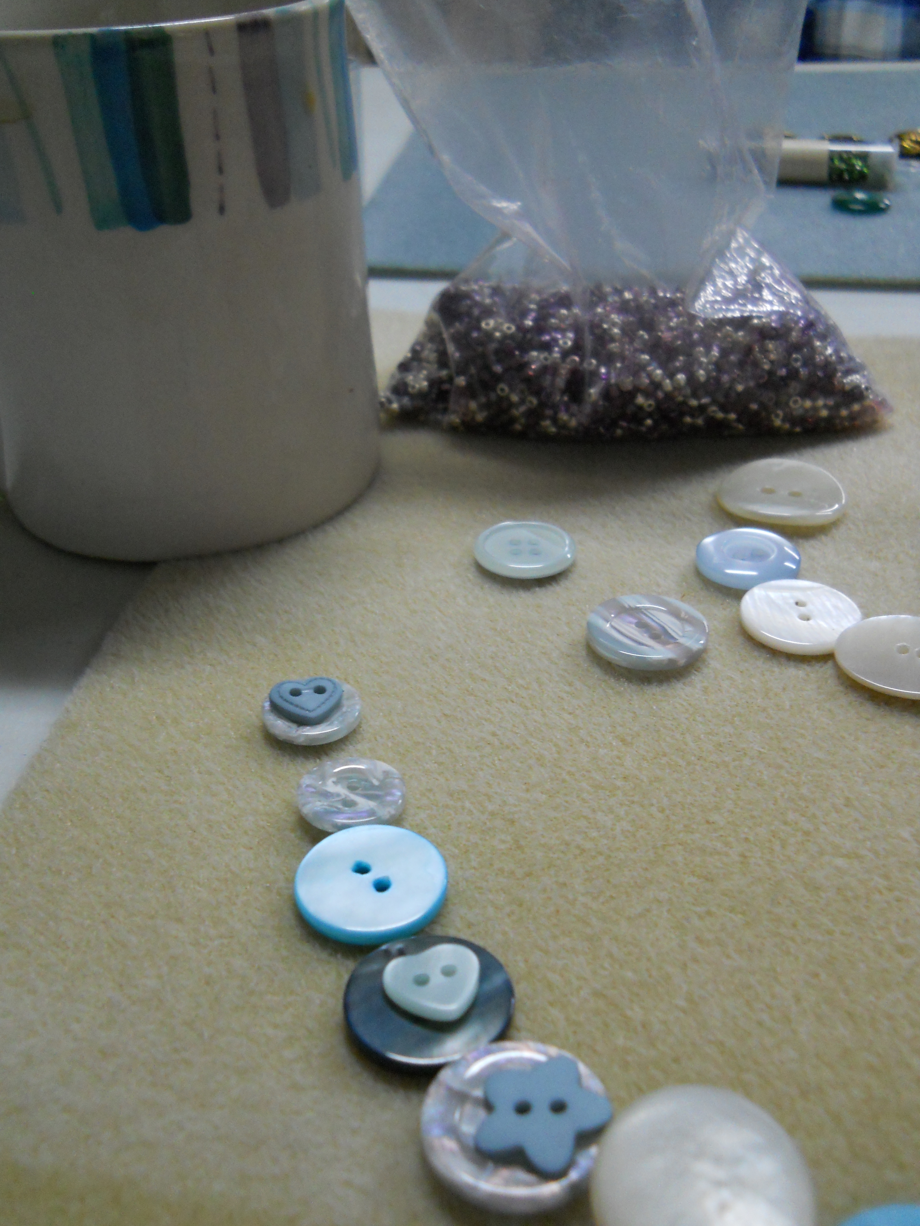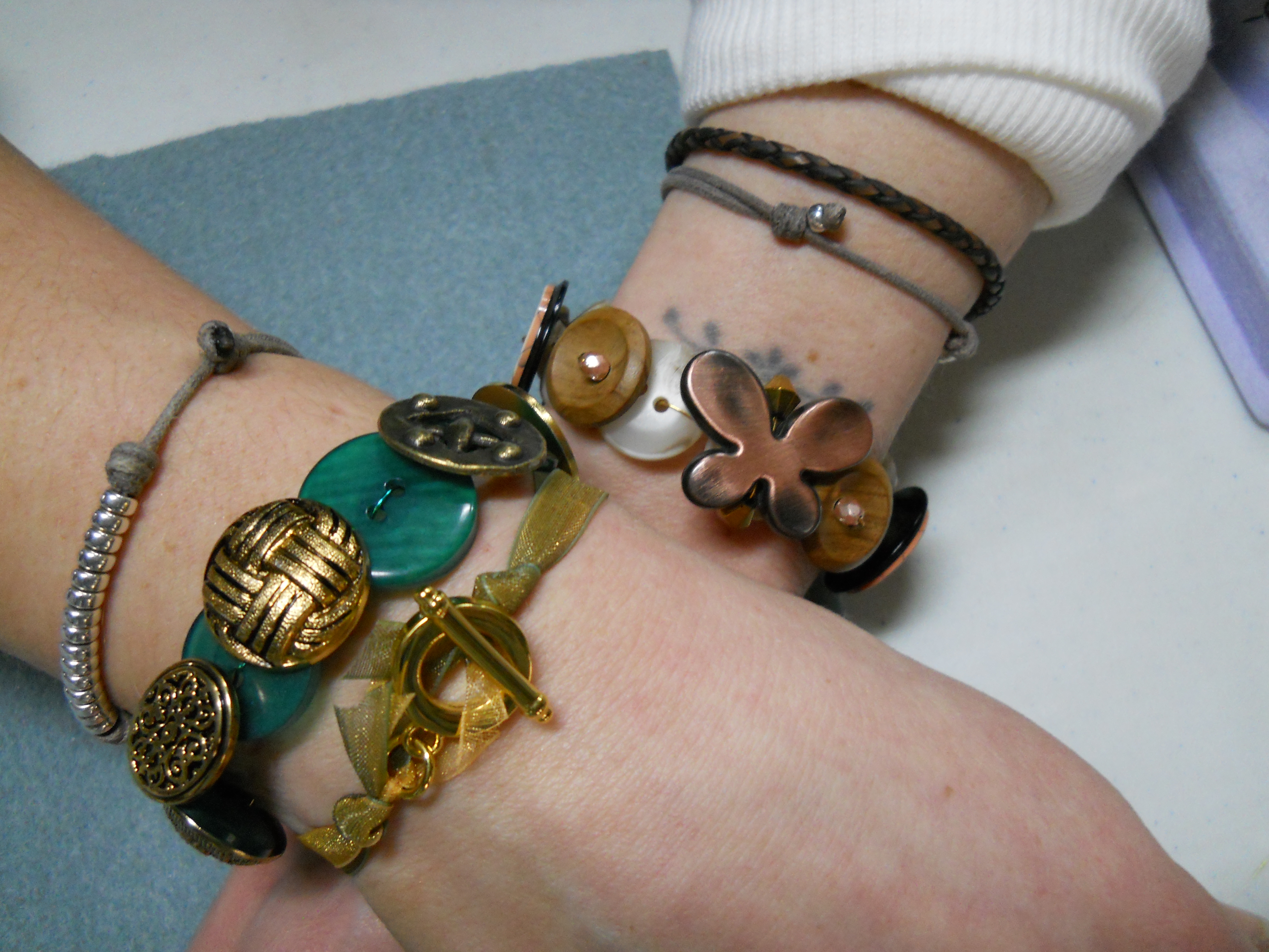 Sisters 1, 2 and I went on a course to learn to string buttons.