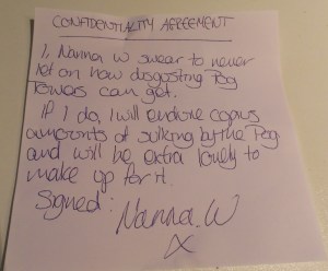 They are not the only things being neglected though. I’ve got so bad at doing the cleaning properly (it’s currently just a bit of wiping before I embark on more Pogimal midwifery) that I have had to employ Sister 1 as my Girl Wednesday. And have had to insist on a confidentiality agreement.: