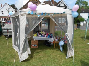 Big thank yous to mum and dad who turned out to be expert gazebo putter –uppers, Sisters 1 and 2 and assorted partners for making the stall look very busy from the start, to cycling friends mum who came to visit despite having a hoard of people to feed later in the day and to Lovely Little Man and Gorgeous Godson (to be) who gave me lot of little people smiles and giggles. Also, thank you to everyone who did a sun dance for today. The heavens opened 10 minutes after I got home :oD