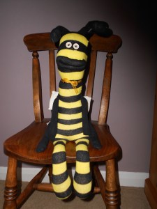 This weekend I have pretty much confirmed that I’m bad at sitting around doing nothing. On the Pogimal front I have made a Squaddimal (who is off to Afghanistan for his adoption by a slightly more official looking squaddie), a YMCA-imal (who will shortly be touring Macadonia doing some charity work), a tiger-dragon-imal, and a two foot bumble bee. (imal). (All pictures can be found in the Pogimals being rehomed face book page should you fancy a peek.)