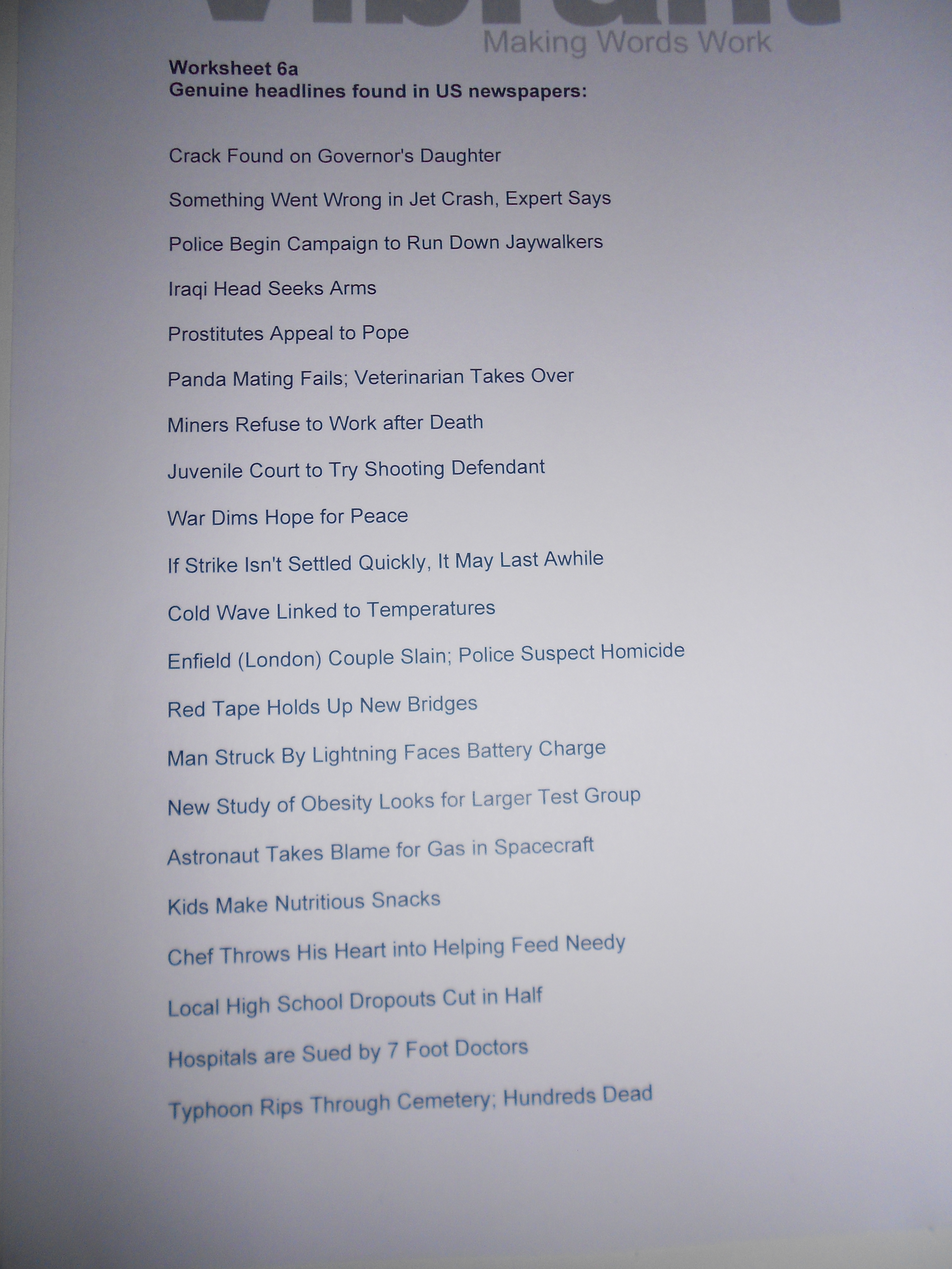 One of the handouts on the training course today made me giggle a lot…you can have a look below – they are all true headlines that appeared in US publications :o)