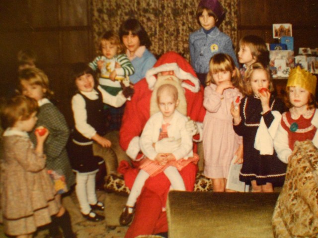 A couple of years ago I was talking about a friends Christmas party I’d been to aged 5. Father Christmas had been there and I’d liked him very much, not because he’d given me a present, but because he’d let my best friend sit on his lap. That made me very happy because, as you can see, my best friend was very poorly.