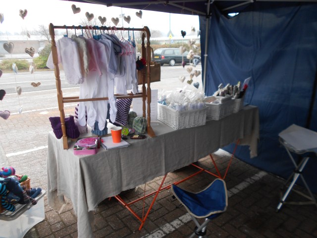 I had my first stall at my first ever Farmer’s Market. That was a little hair raising in itself, but as I left home at 6.30am (another Sunday challenge), it was -6.5. When I arrived at the market it was -3. Then it started raining…ice. Mum, dad and I put up my newly acquired gazebo, set out the stall and they, very sensibly, left. I settled in my gazebo sporting the following:
