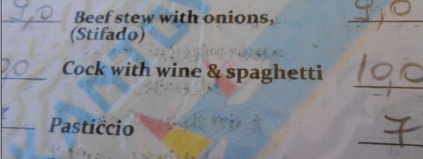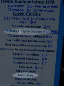 And then there were the menus. I’m not criticising…I certainly couldn’t write them in Greek. But these still made me giggle a bit: