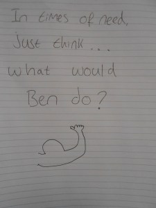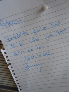 I’ve got used to him over the last year. It’s been like having an entertaining Tigger-like presence in the office and I’m going to miss him – today was his last day. I’ll miss the round of applause he gives each member of the team when they come back to their desk from a meeting, getting a drink, the toilet…. I’ll miss the teasing that he was so good at. And I’ll miss the insight into the mind of a 21 year old…actually, some of that I won’t! I will miss seeing his words of motivation and notes though.