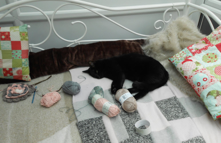 And to try to calm down a little I spent last Sunday on my day bed in the West Wing (ok, the conservatory) crocheting my next ‘thing’, listening to Radio 4. (Sister 1 : ‘How old are you?!) It was so relaxing, even Norman fell asleep, so I think we’d better do some more of the same this weekend before I go pop! :o)
