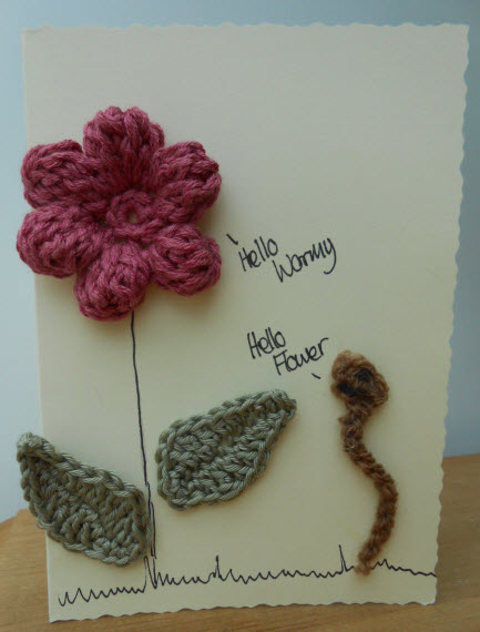 Not very Fathers day ish, but he does like flowers and worms so I thought it was acceptable. Note: Using superglue to crochet a worm to a card results in a lot of mess….and a short panic when he is actually superglued to your fingers.