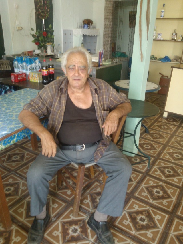 And finally there is the lovely Nico. He has the only bar /shop in a mountain village almost wiped out by an earthquake in the 50’s. It contains a live parrot, a huge stuffed vulture and for sale, a lot of tinned luncheon meat and air fresheners. He makes a damn good Greek coffee too.