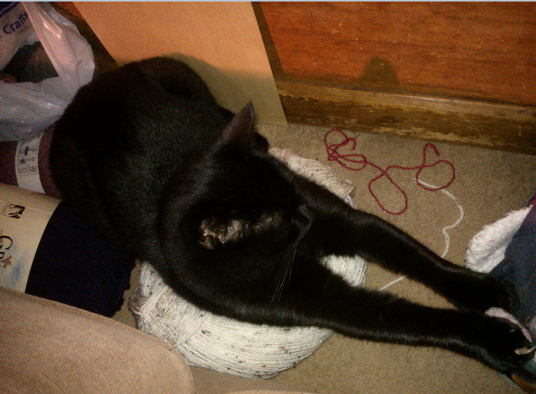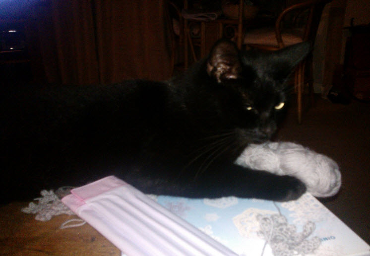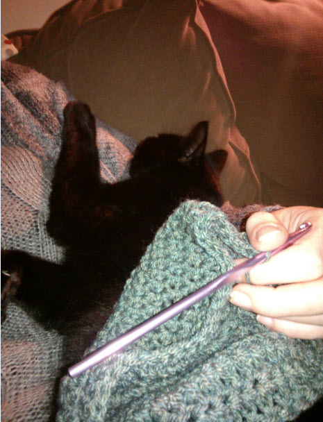 I like to crochet a bit a lot, ok, almost obsessively. Norman doesn’t seem so keen. As soon as I get out the bits I need he tries distraction techniques.
