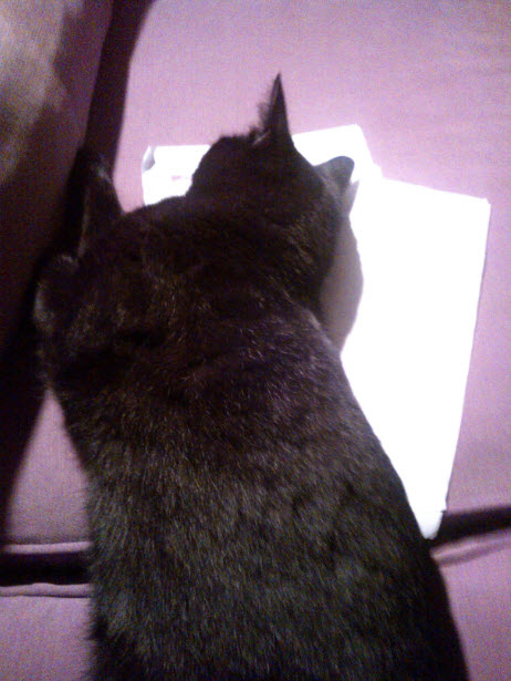 Today we had a breakthrough though, I put the blanket on the floor in the conservatory while I worked, turned round and….ahhhh :o)