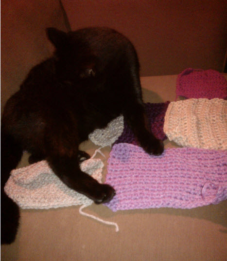 I stared wondering if it was crochet envy. So I found all of the practice squares I did when I started and thought I’d make them into his very own blanket.