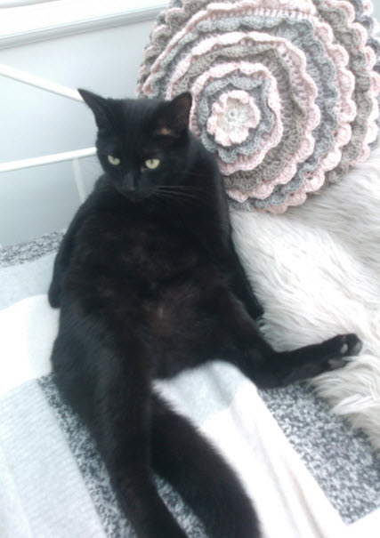 21st February 2014: Norman getting involved in my crochet, again. ‘I’m just giving it a cuddle, honest’.