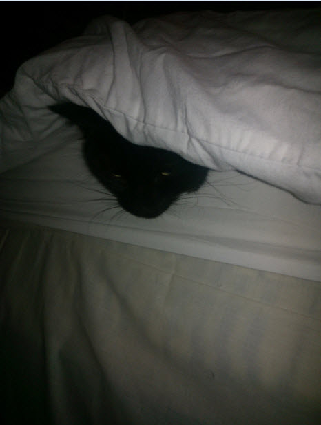 ‘I am hiding. And liberally covering your jumpers in fur’.: