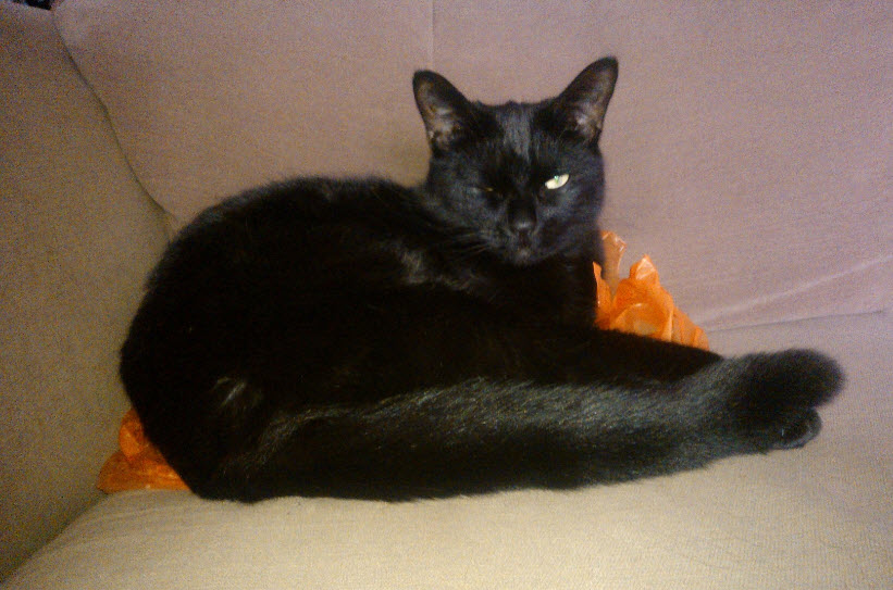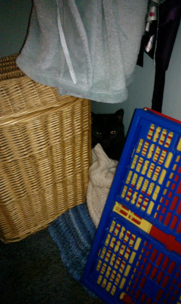 cardboard boxes, bags, inside any baggy top I wear…what is it with the furballs?! :o)