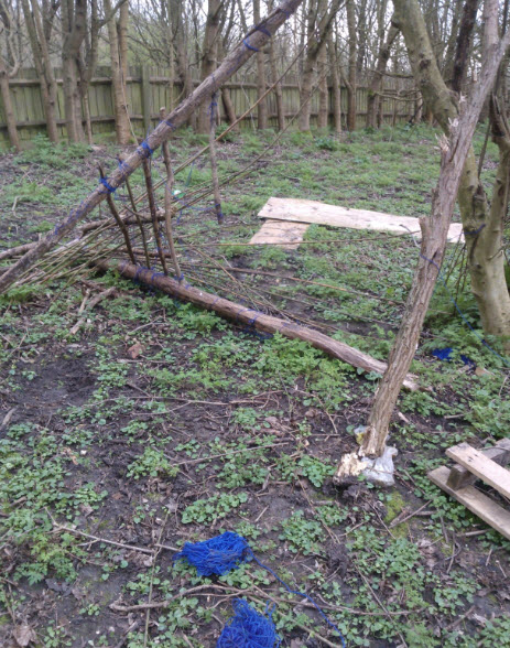 10th March 2014: Someone one road down from me posted in a Facebook group that her cat was missing so I did a quick hunt to help out. I didn’t find the cat, but I did find the start of a camp, and another use for wool!