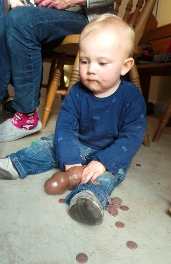But when he was released from his highchair he was much more interested in a real chocolate egg:
