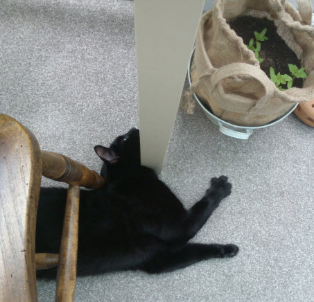 Where it gets a bit different is here: For my birthday, Sister 2 gave me a bedside light that turns on when you touch any part of it. It’s great – no more fumbling for the switch in the dark. This weekend though, Norman learned to use it. I no longer get to wake gently after a few snoozes. Oh no. Now, the alarm goes off and within minutes my room is lit up like a light house as Norman wraps himself around the lamp. He even seems to have worked out that a few nudges make it brighter.