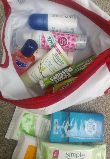 And this evening, Sister 1 popped over with Little Pea to give me this for my plane journey. All the toiletries are under 100ml and I even got sweets to chew on the plane. They know me well, too.