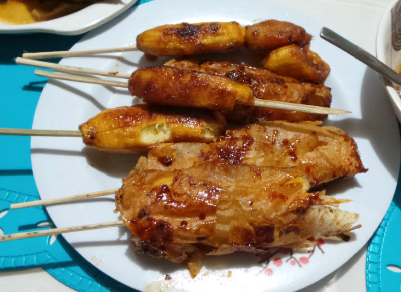 These are bananas cooked in sugar (top) and wrapped in a sort of pastry with sugar (bottom) These are also lovely: