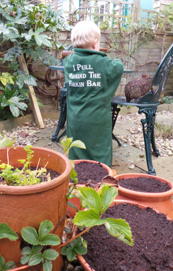 6 – Check where Little Pea plants the bulbs. It may look like they’re all going in the pots, but in fact you may find a small pile of them in a corner of the patio the next day