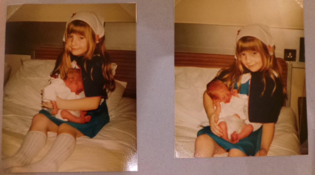 When I was little, I wanted to be a nurse when I grew up. This is me meeting my sisters for the first time: