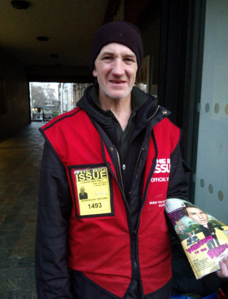 I don’t do much of the going out or drinking these days, but just before Christmas I joined some of the people in my new office for some Christmas drinks. On the way home I saw a man who I see sleeping on The Strand every morning, selling The Big Issue. I bought a copy, gave him a bit extra and we had a chat.