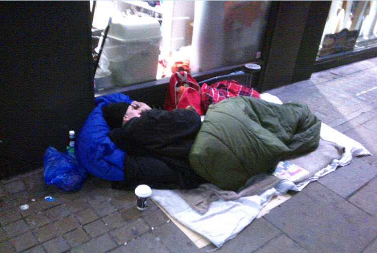 His name is Richard, he’s been homeless on and off for nine years and has been sleeping in that particular spot for a few months after being evicted from a flat he finally got when whichever agency pays rent screwed up and forgot to pay. As a single man he’s now back at the bottom of the housing list. He’s always asleep when I walk past at 7am because he doesn’t go to sleep until 6am so he can be sure that ‘the drunks and nutters’ have gone. He wasn’t drunk or drinking, he wasn’t on drugs…he was just keen for a chat.