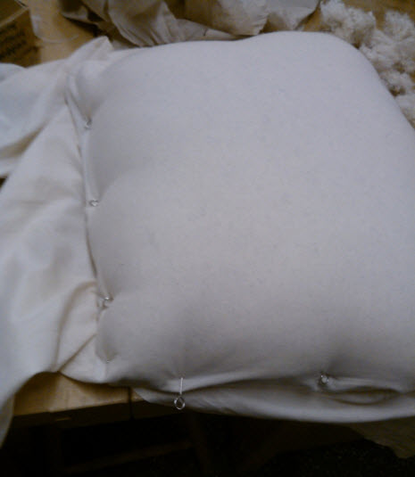 And then spend an irritatingly long time smoothing and pinning fabric onto the wadding before tacking that.