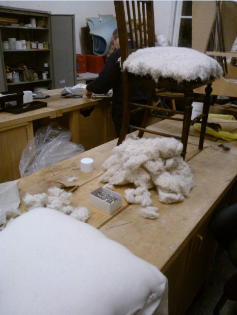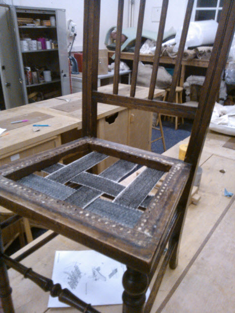 I’ve now started on my second project, which is a lot more complicated.  Last night I learned to use a double ended mattress needle.  It’s pretty much a lethal weapon.  I also learned to use a regulator.  Apparently Sister 1 and I were the only ones in the class to have heard of Warren G and Nate Dogg’ song ‘Regulate‘.  It’s probably the only time people have attempted to rap and upholster at the same time in an adult education class.  It’s probably best to keep it that way too…