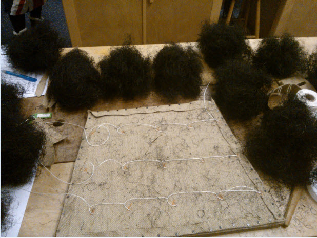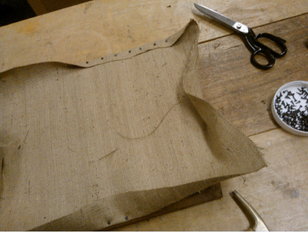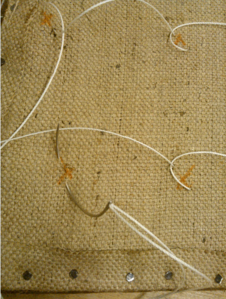 You sew holes into the hessian using some weird loops