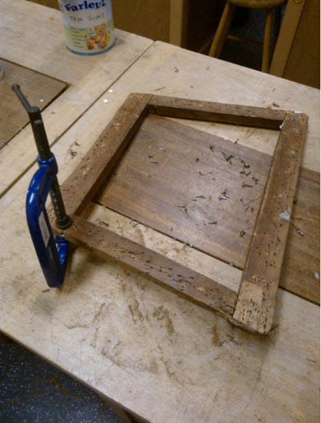When you’ve filled all the holes with glue and sawdust, you do the webbing…