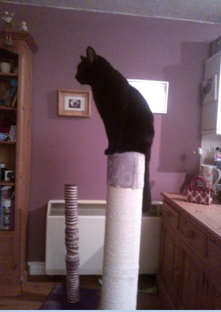 Buy a new scratching post for Norman* online and don’t look at the measurements. It will take up half of Pog Towers, but you will own the happiest cat in the world because now he knows he’s human – he’s the same height as you, after all.