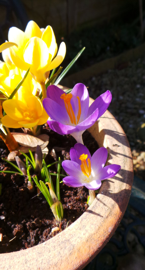 Enjoy the first signs of spring sunshine on the crocuses you planted, never really thinking that they would germinate: