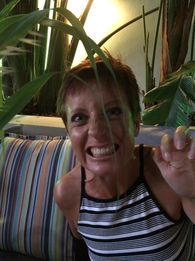 …but when the couple one side of us spent their dinner discussing every meal they’d eaten so far on holiday (and nothing else), and the couple on the other side got engaged and then he spent an hour telling her how much her ring cost (and nothing else), I felt the need to lighten the situation (with the help of three glasses of wine and a cocktail – about one cocktail and 2.5 glasses more than I should drink in public). This is me being a tiger. (There was a jungle sort of flower arrangement, there was some context…)