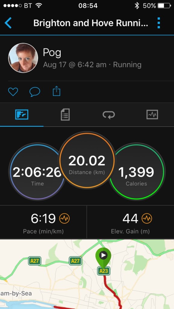 Well, clearly this Pog is designed to 1) run very slowly. It was barely a jog in places, and 2) is better at running when the sun is in hibernation. Because I did 20km. TWENTY. Without. stopping. once. Even when I had to cross roads I ran up and down the pavement so I didn’t stop. I pretty much can’t move now, but we’ll gloss over that.