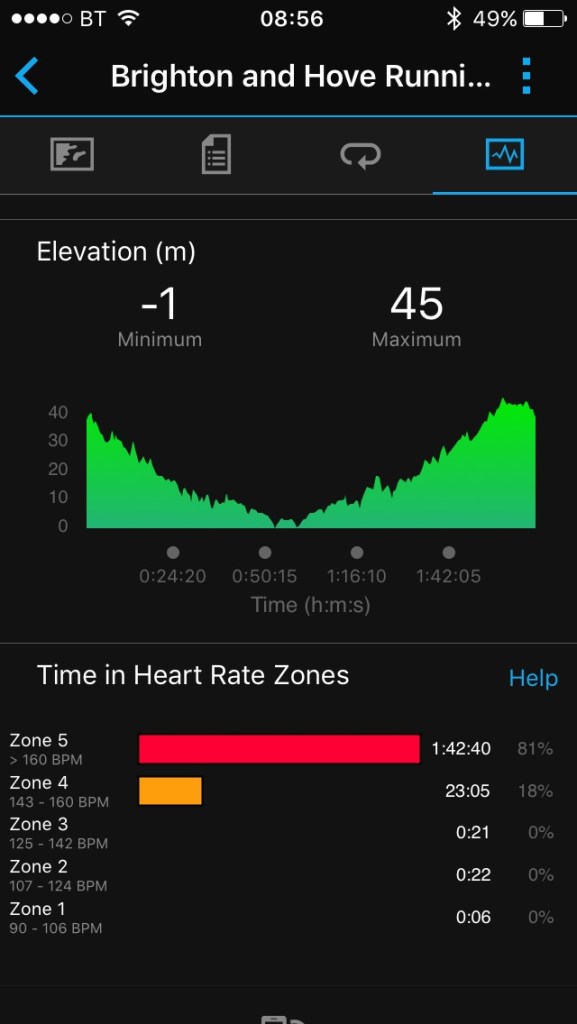 There was one slightly odd thing though. Either the fancy pants watch had a blip, or it’s not surprising I was so soggy when I got back (I weighed my clothes: 0.5kg, they were so waterlogged). If I understand this bit right, it seems that at some point I was actually a meter below sea level… :o)