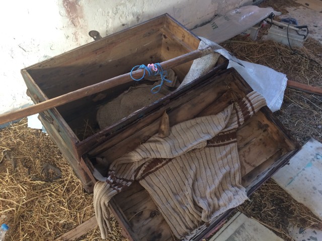 In an empty house, smelling of donkey, and a trunk containing two jumpers. Obviously: