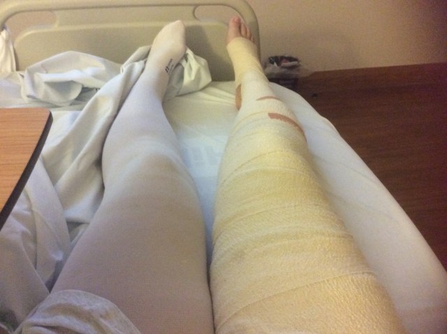 I admit it: I kind of thought that a day or two after having my old lady leg all fixed up, I’d be pretty much back to normal and making the most of some time off work. This level of ouch is not what I signed up for: