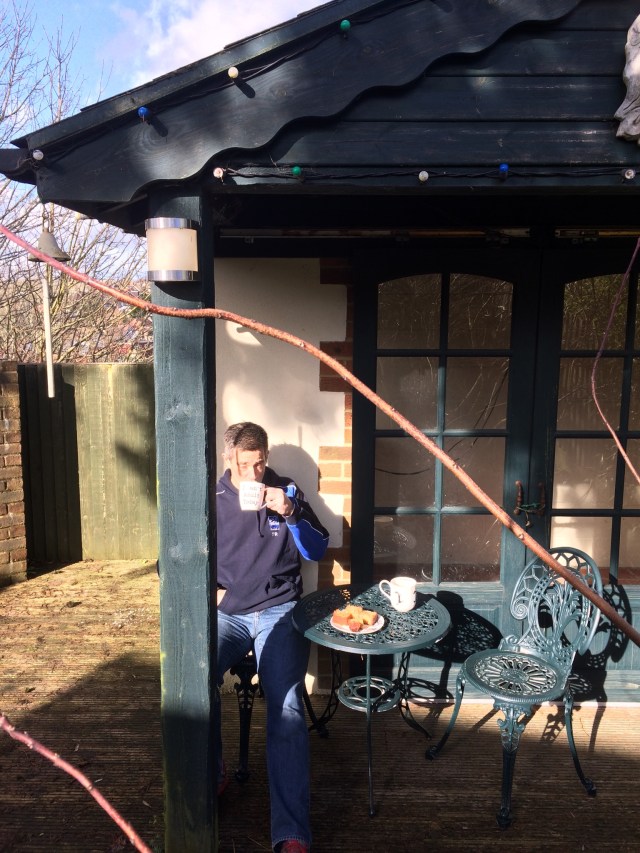 Meant we got a sunny spot (which before was mostly dark) for a cup of tea and piece of freshly cooked cake: