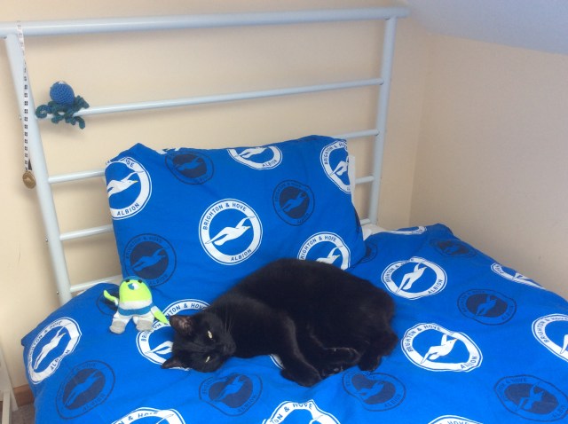 Norman thinks Smaller Boy is a good one too. He’s rarely been in Da Boyz room, but today I found him here: