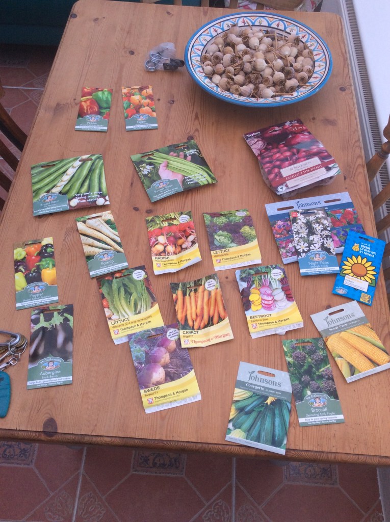 I have always wanted to be Barbara from The Good Life. Last year turned out to be a trial run when I filled the raised beds himself had built so many plants that things were either teeny or refused to grow. This year I sent a photo of seed packs to Dad (because the garden centers are now all closed, so I’m having to try to grow from seed and really channel my inner Barbara in the process) and asked for help. I now have outside seeds and inside seeds and some that are just waiting a while: