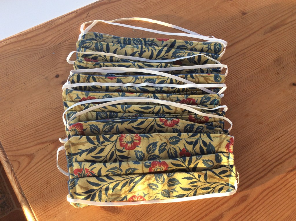 And last night I got Himself involved in sewing (!). I joined one of the many facebook groups taking requests from the NHS who are short of Personal Protective Equipment (PPE). This group had been approach by a surgery that is opening tomorrow that will be taking in suspected Covid cases, but hadn’t received any PPE. They needed scrubs, masks, hats, etc. Himself and I made 10 masks to help a little: