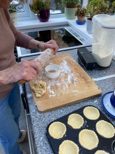 So today Mum got to push the trolley at Tesco, remembered the names of some of the things we were buying and made pie and tarts…from scratch.  And she was so proud that before we put the pie in the oven she took it to show Dad (who we had banished from the kitchen so he could have a rest and maybe so he also couldn’t interfere…)