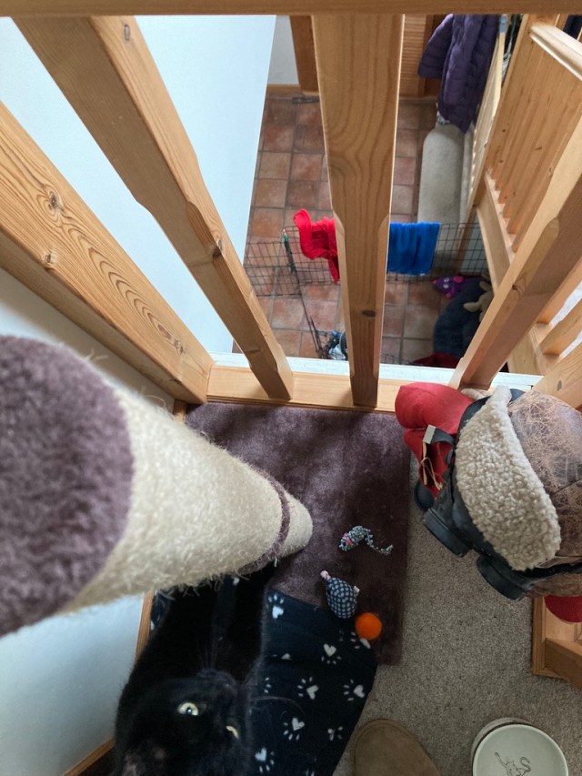 So Norman’s mind games? He’s taken to pushing his toys through the gaps in the stair rails and…