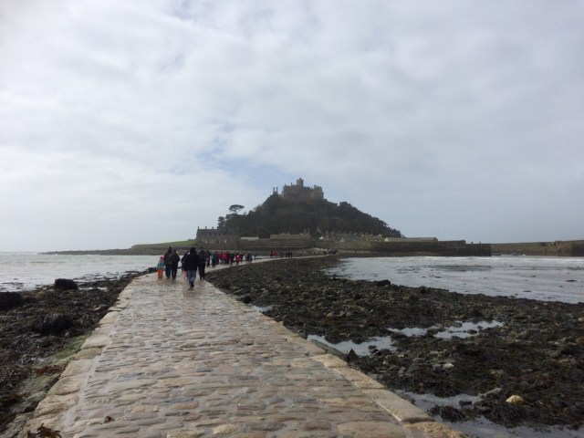 We were in Cornwall and on one of the first days of the holiday we went to St Michaels Mount. This is a castle that you walk to at low tide over a causeway. It was lovely and I really wanted to take a look around and hoped that the boys imaginations would be captured by the place.
