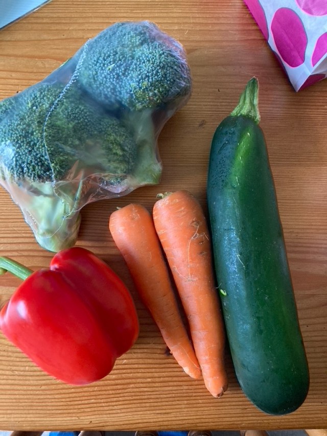 And balancing these with – shock, horror!- fresh vegetables (because the steps to the cellar which houses the freezer are a bit tricky on the way up when you are struggling with your breathing so you can’t actually get to the frozen peas or chips)