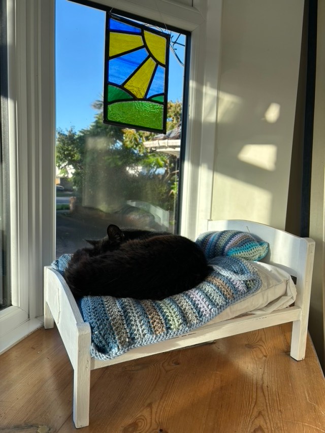 We’ve been through a lot together, haven’t we? Living in Pog Towers with those terrible neighbours next door who were always shouting, your brother Charlie disappearing on us forever, good times, bad times and, wool…so much wool.  I think you loved my crochet as much as I did – you were often tangling up balls or capturing the moving thread, or just sitting on the side of the chair, snoozing next to me.